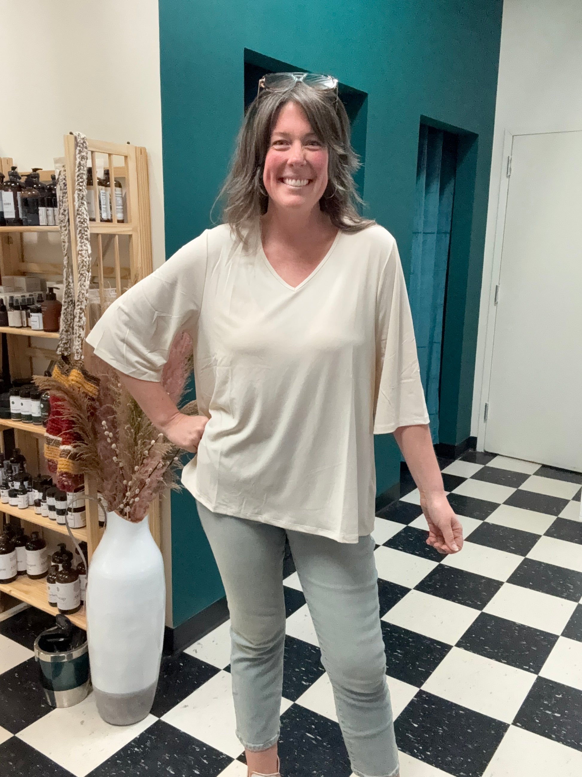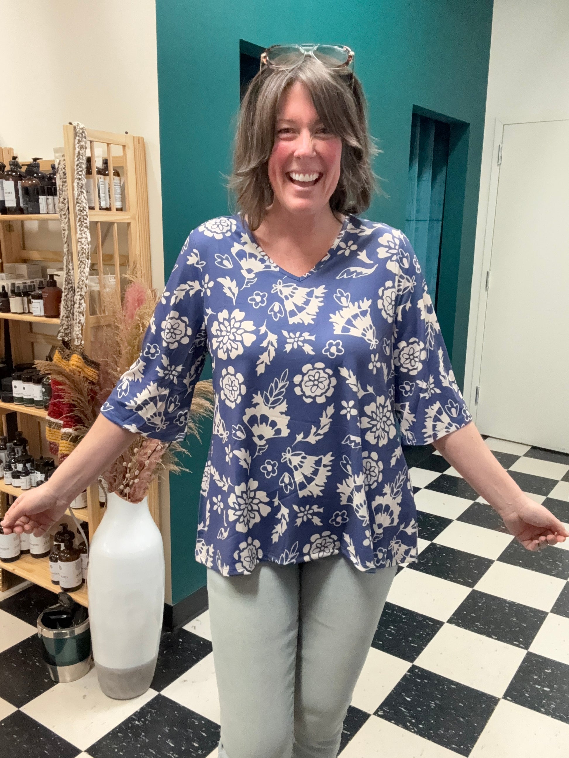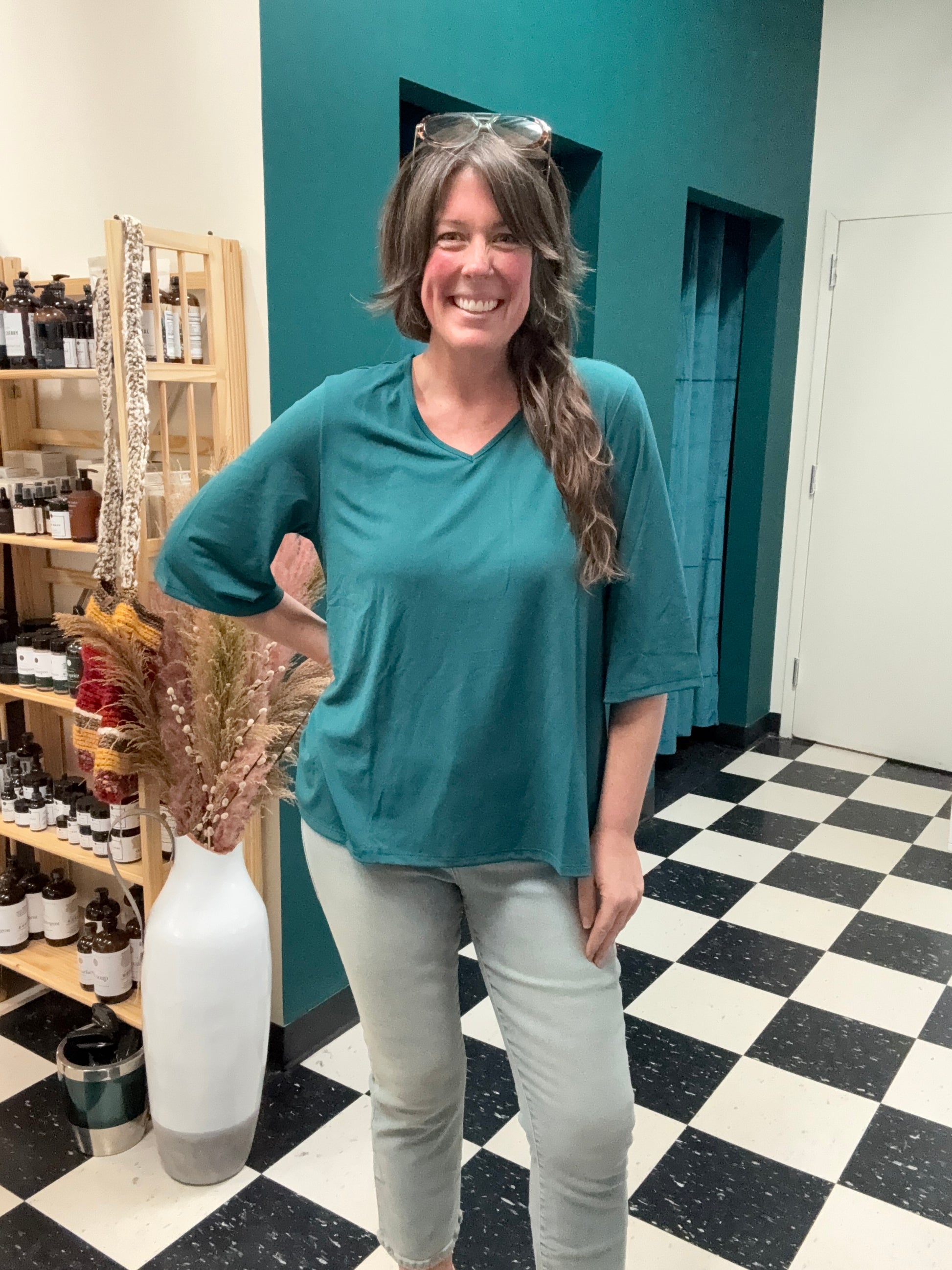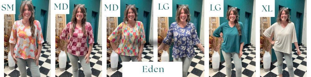 Introducing Eden: Your Everyday Essential! Elevate your wardrobe with the lightweight and versatile Eden ¾ Sleeve Top, crafted to effortlessly complement any style. Whether worn solo or layered beneath your favorite overlay, Eden shines with its timeless simplicity. Stay true to your unique style with the understated elegance of Eden.\r\r \r\r Fabric: \r\r Knit Crepe Moss - 95% Poly / 5% Span \r\r \r\r Sizes: XXS-3XL